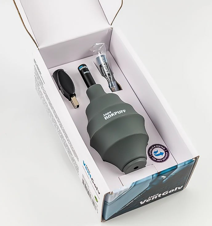 Røykpuff består av gummibelg, batteri og røykpatron. Batteri og røykpatron skrus sammen til en enhet som monteres i gummibelgen. Den er veldig enkel å bruke og starter automatisk, så det er bare å trykke på gummibelgen for å slippe ut røyken. Røykpatronen er veldig god og rekker til ca 1000 røykpust, og når den går tom er det bare å bytte til en ny. Batteriet kan enkelt lades i en standard USB-port. Ekstra røykepatroner er tilgjengelig som tilbehør.
