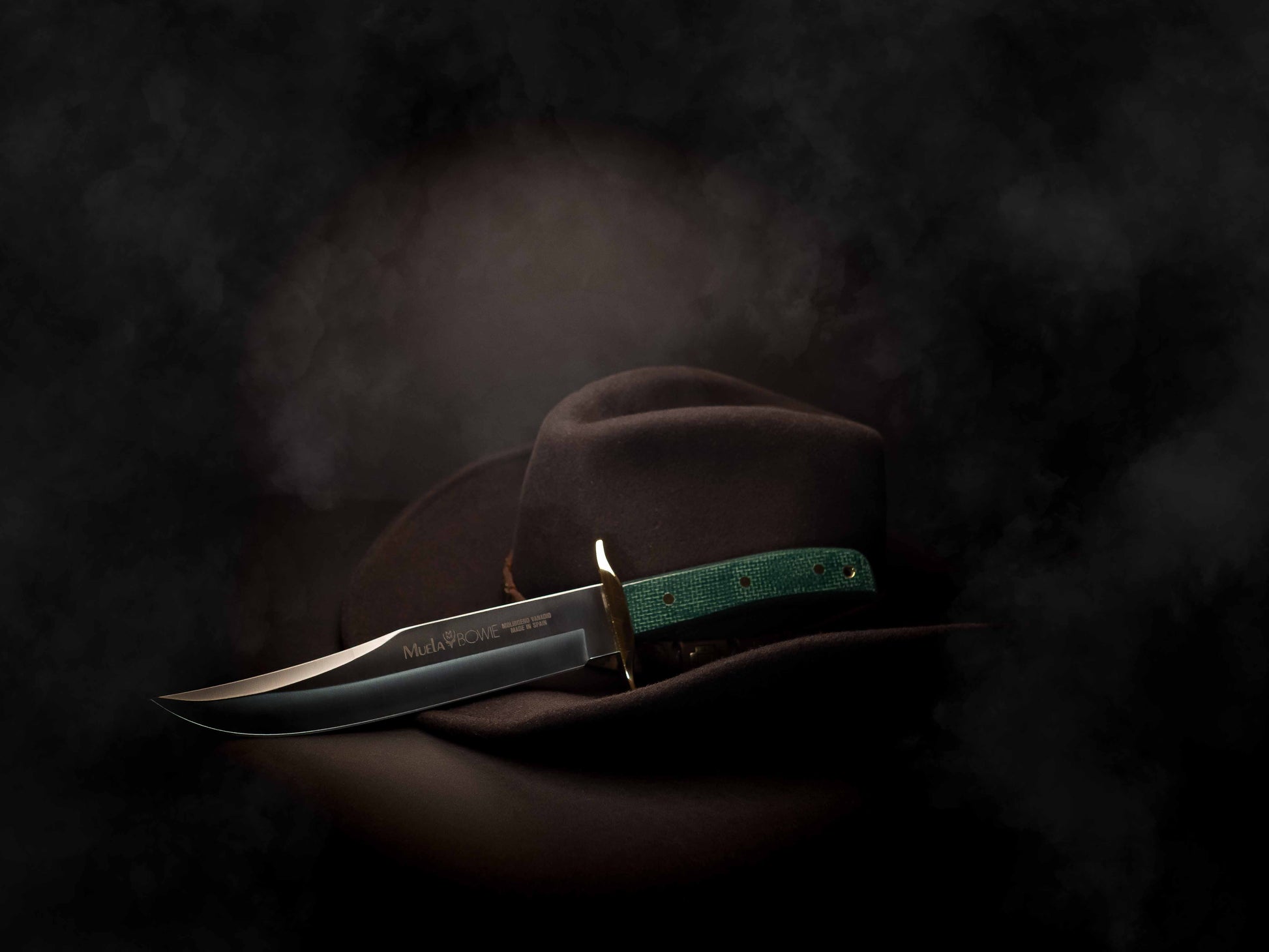 Denne tradisjonelle Bowie-kniven er håndlaget i i Spania av Muela – kjent for høy kvalitet og solid håndverk.