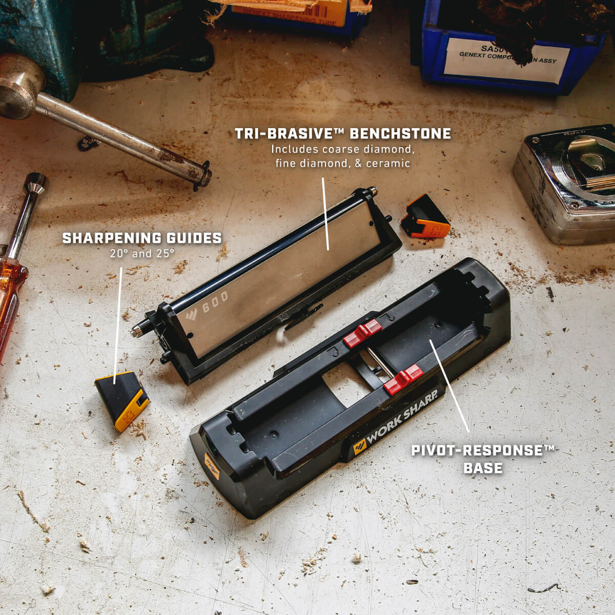 Work Sharp BSS knivsliper er et slipesystem med 3 grovheter og vinkeljigger.